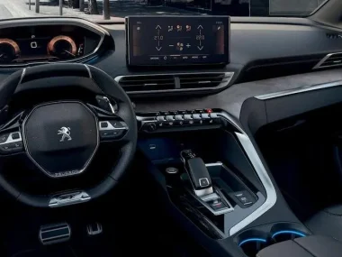 Tổng thể khoang cabin xe ôtô Peugeot 5008 GT vẫn mang nét quen thuộc với kiểu thiết kế i-Cockpit nổi tiếng. Xe sử dụng vô-lăng thiết kế D-Cut hai chấu bọc da theo phong cách GT vẫn được giữ lại trên phiên bản này. Cần số điện tử mô phông cần điều khiển trên máy bay.